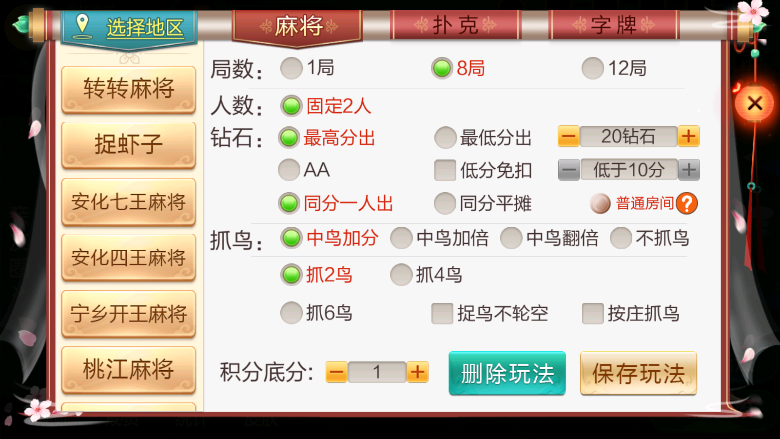 麻将:急速8张麻将、转转麻将、红中麻将、邵阳麻将、新宁麻将、长沙麻将、怀化麻将、鬼麻将、258麻将、王钓麻将、永州麻将、道州麻将、靖州麻将、二人缺门长麻、湘阴推倒胡、岳阳红中、捉虾子、安化七王麻将、安化四王麻将、宁乡开王麻将、桃江麻将、一脚赖油、益阳麻将、郴州麻将、沅江麻将、宁乡麻将、平江扎鸟、岳阳炒股、南县麻将